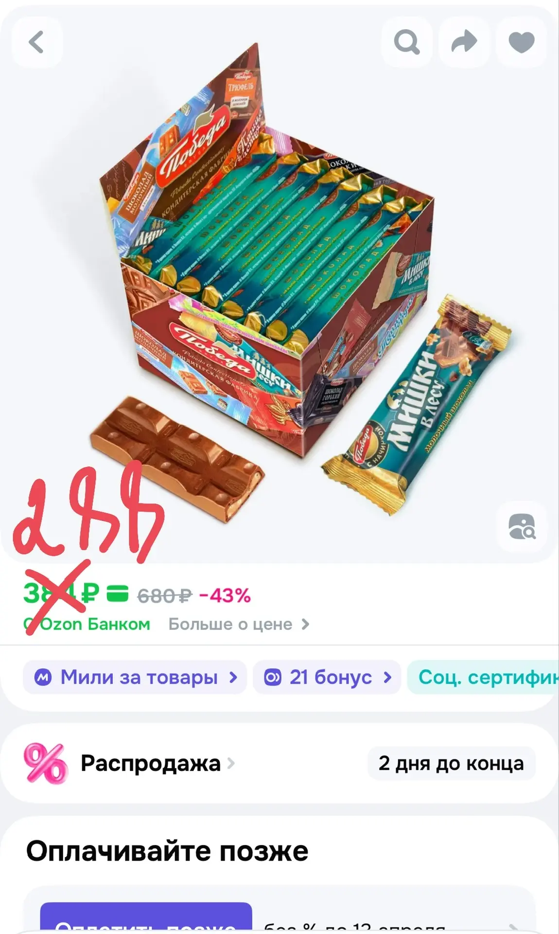 Делимся! Акция хорошая 👍. Получается что одна шоколадка 18₽ (16 штук в упаковке).