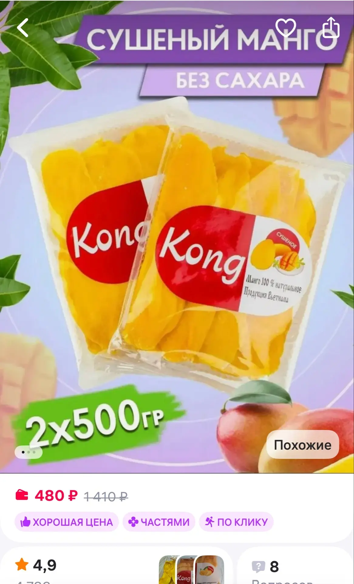 WB-> Манго сушеное натуральное без сахара 1 кг - 480₽