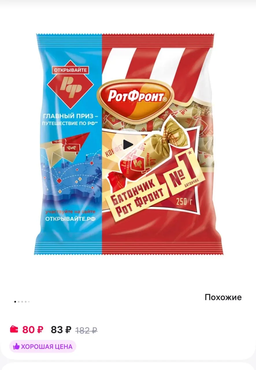 WB-> РОТ ФРОНТ Батончики классические, 250 гр - от 78₽ до 80₽