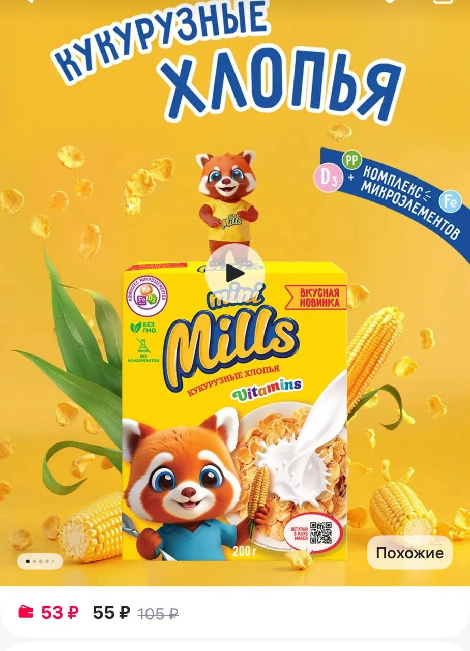 WB-> Mini Mills Готовые завтраки кукурузные хлопья обогащенные, 200гр - от 51₽ до 53₽