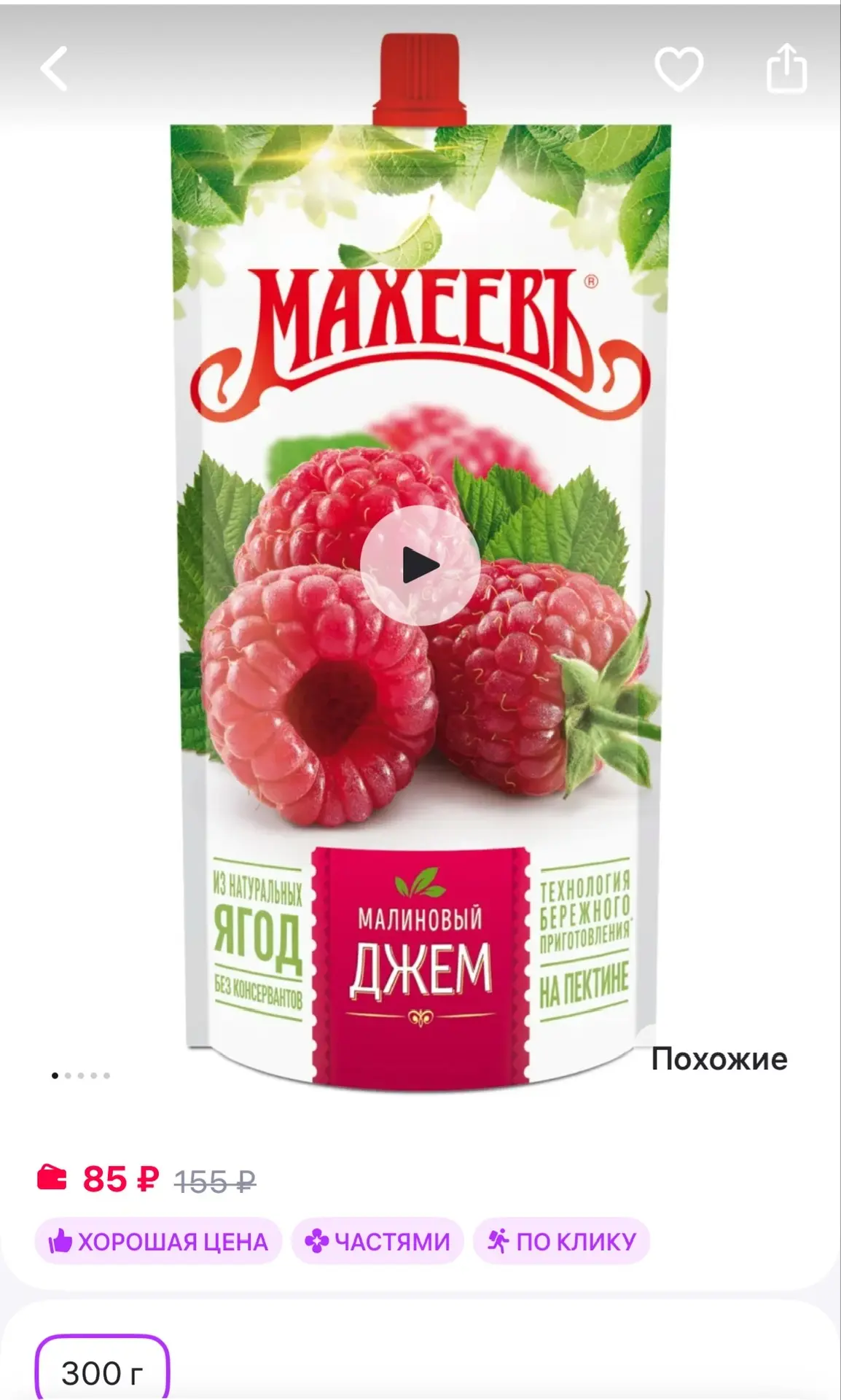 WB-> МахеевЪ Джем Малиновый, дой-пак 300 г - 85₽