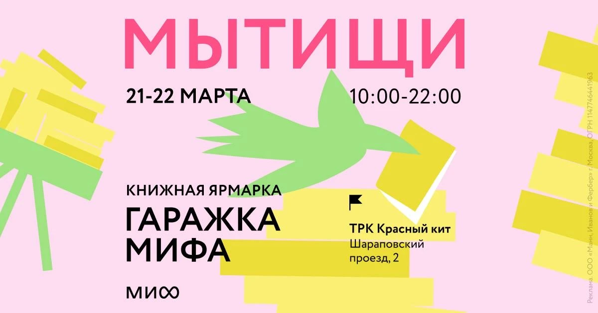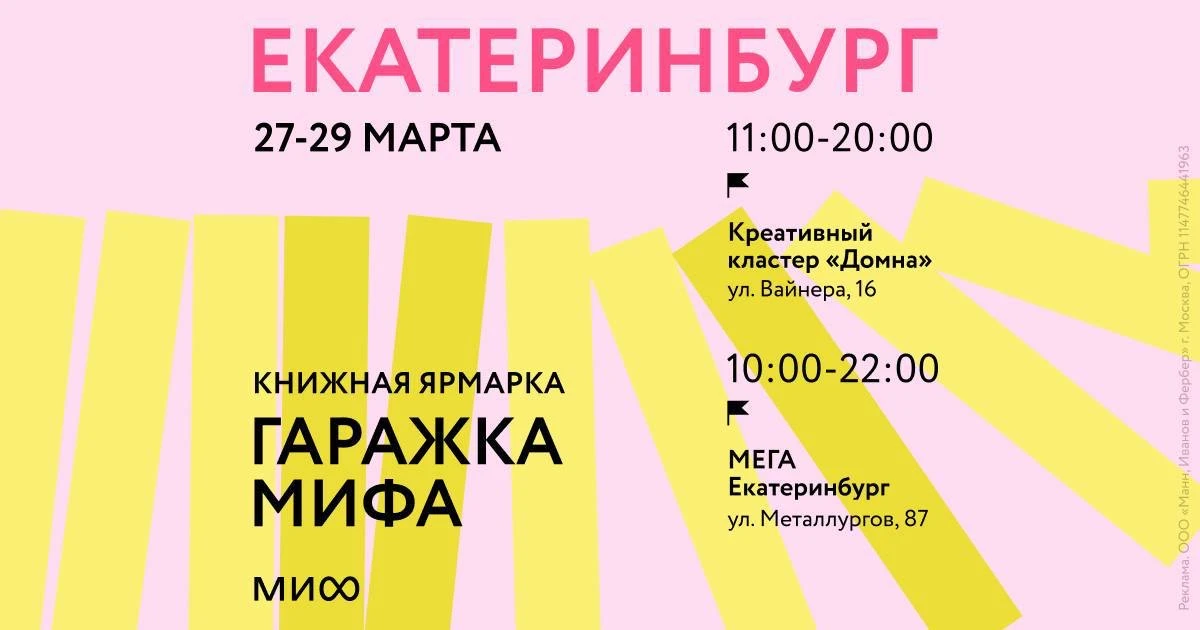 ➖Екатеринбург, 27-29 марта, с 11:00 до 20:00 в креативном кластере «Домна» и с 10:00 до 22:00 в МЕГЕ — книжная гаражка МИФа
