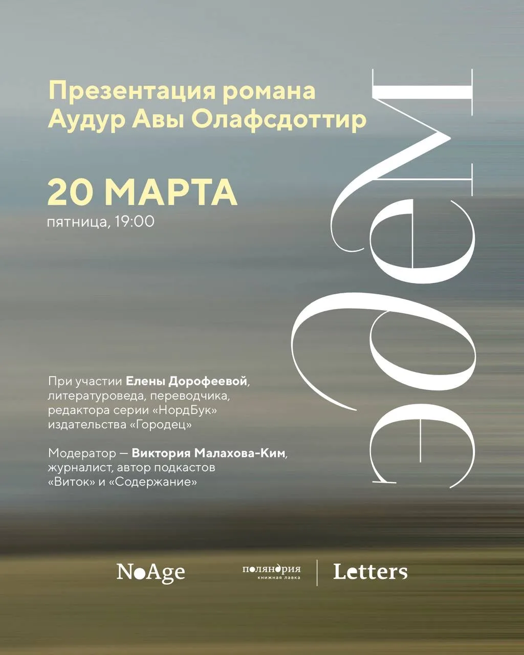📎Москва, 20 марта в 19:00 в Поляндрии • Letters состоится презентация романа Аудур Авы Олафсдоттир «Эдем», регистрация здесь