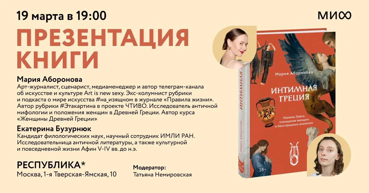 📎Москва, 19 марта в 19:00 в Республике на Тверской состоится презентация книги «Интимная Греция». Регистрация здесь
