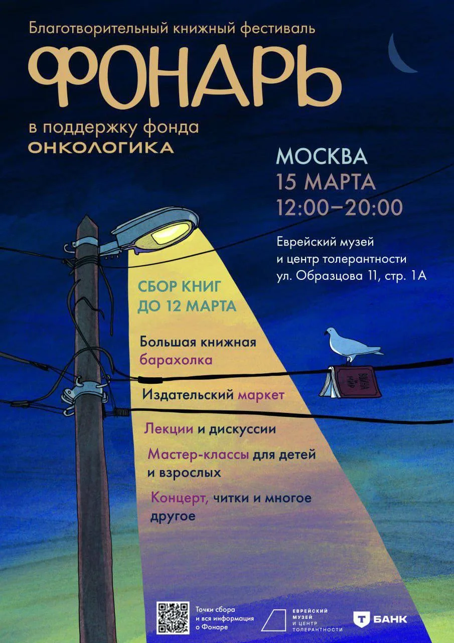 🤩Москва, 15 марта с 12:00 до 20:00, в Еврейском музее и центре толерантности состоится благотворительный книжный фестиваль «Фонарь», подробности здесь. Также до 12 марта можно сдать на маркет свои книги в хорошем состоянии