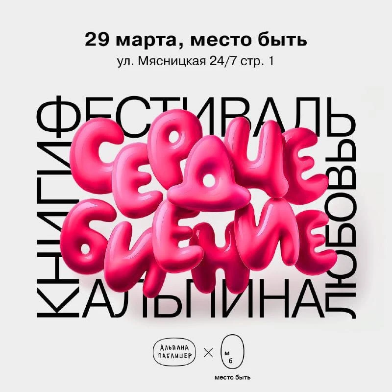 ➖Москва, 29 марта с 12:00 до 18:00, место быть, Фестиваль «Сердцебиение» издательства «Альпина Паблишер», регистрация здесь