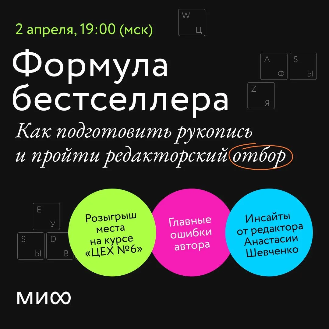 3️⃣Онлайн, 2 апреля в 19:00, бесплатный вебинар от МИФа — «Формула бестселлера». Регистрация здесь