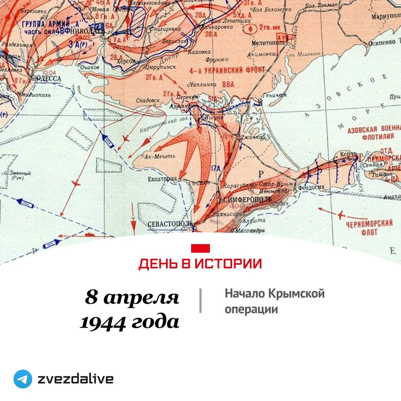 В этот день началась наступательная операция советских войск с целью освобождения Крыма от войск нацистской Германии во время Великой Отечественной войны. Проводилась с 8 апреля по 12 мая 1944 года.