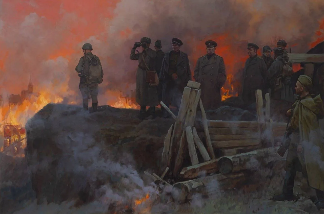 «Маршал А.В. Василевский на наблюдательном пункте. Горящий Кёнигсберг»