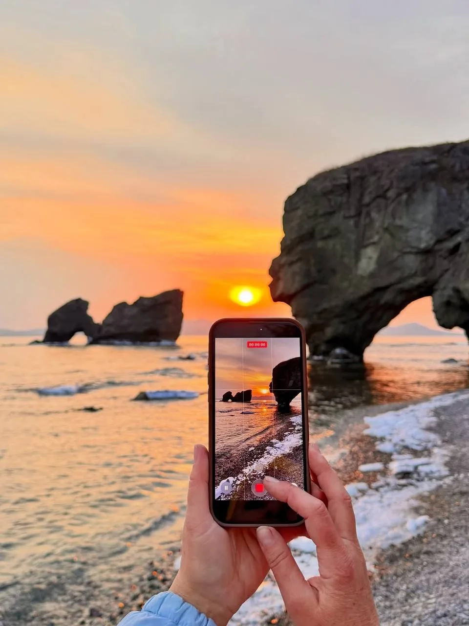 Вот такой закат засняли местные жители на полуострове Краббе в бухте Агатовой.