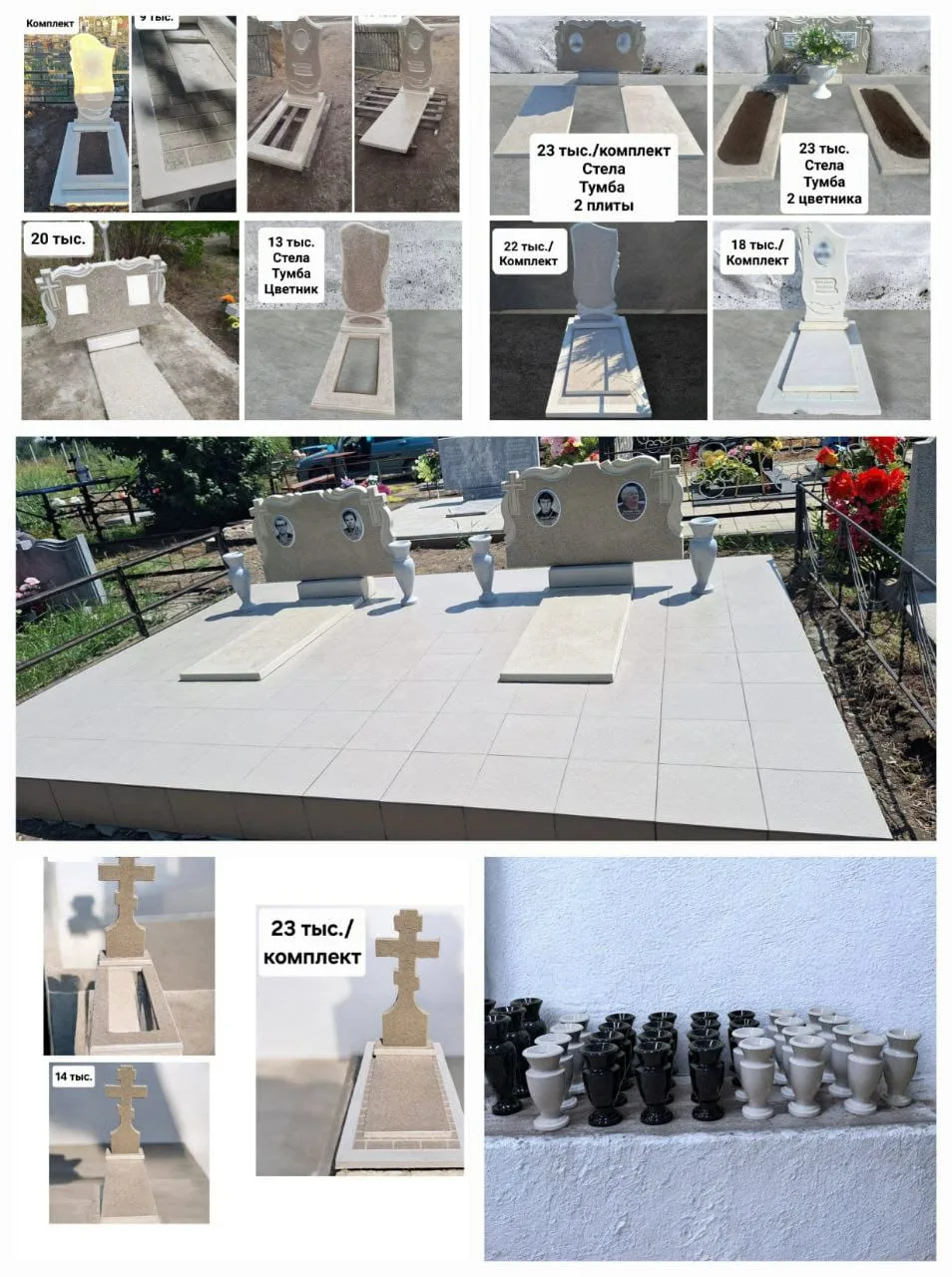 📌 *В наличии памятники, вазы, готовые плиты для установки.*
