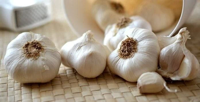 Чеснок должен томится под крышкой 5 минут. Потом снять кастрюлю с огня, открыть крышку и всыпать 1 ч. ложку питьевой соды.