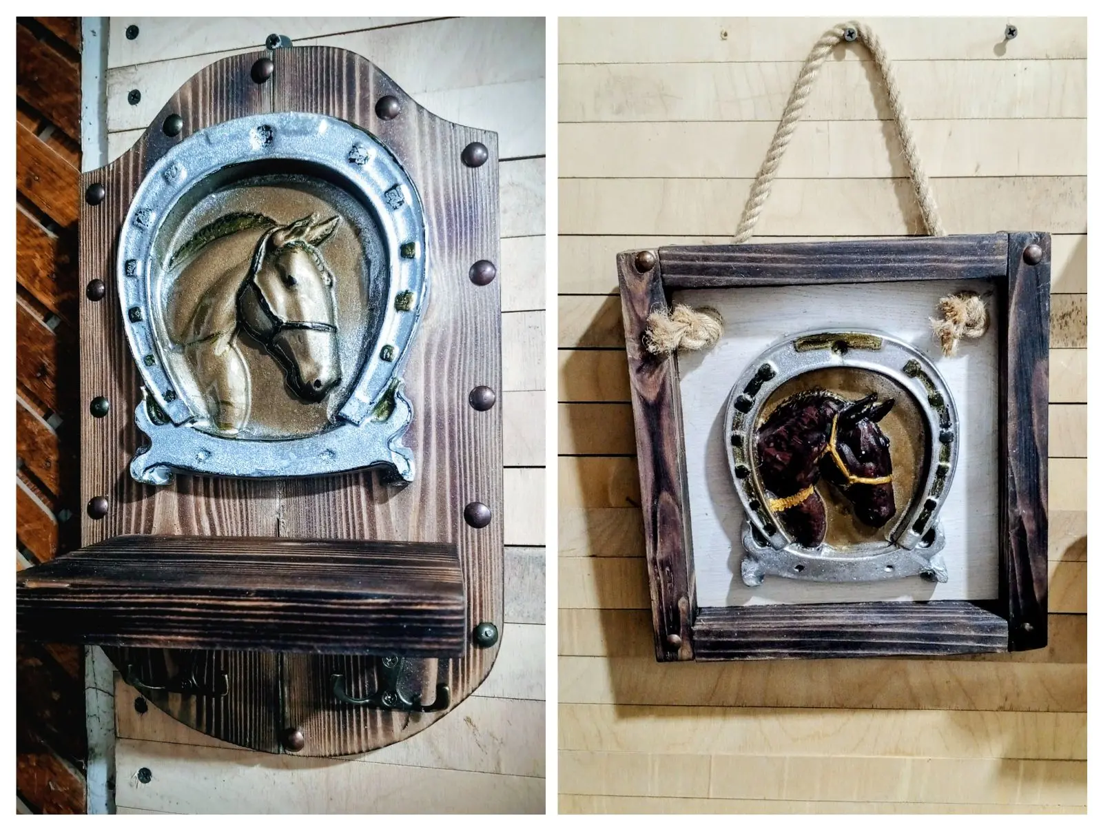 1.‼️Предлагаю вашему вниманию потрясающее панно-оберег в форме подковы «Лошадь». Это изделие ручной работы из сосны и дуба, пропитанное белым и платиновым цветом, с элементами обжига. Его размер составляет 25х25.