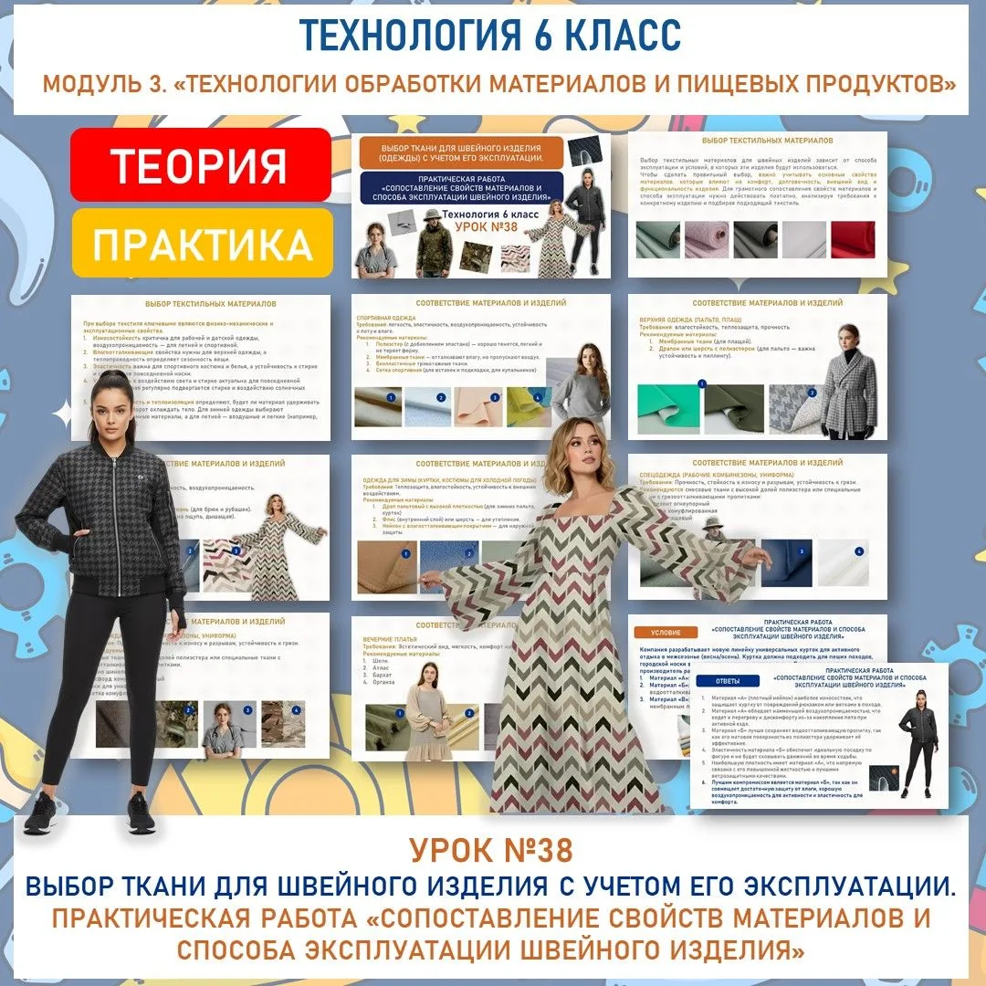 🆕✅Выбор ткани для швейного изделия (одежды) с учетом его эксплуатации. Практическая работа «Сопоставление свойств материалов и способа эксплуатации швейного изделия». Труд (технология) 6 класс. Урок №38.