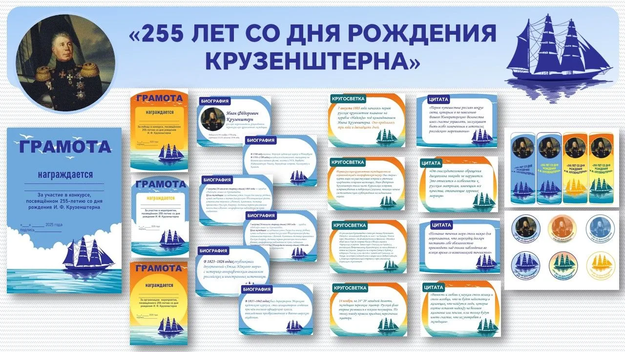 🆕✅Грамоты, речевые облака, закладки, нагрудные значки «255 лет со Дня рождения Крузенштерна». Оформление.