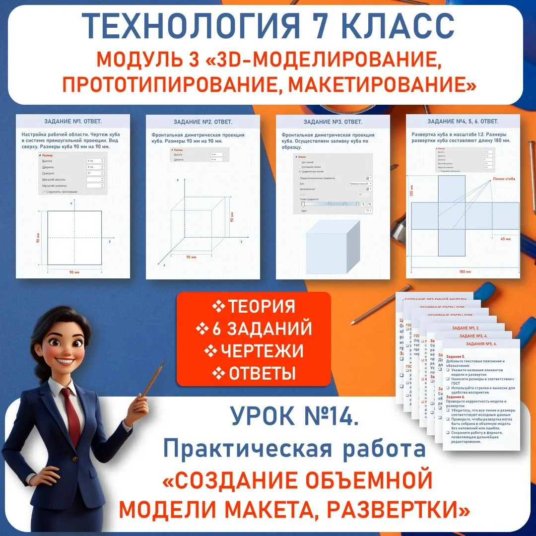 🆕✅Практическая работа «Создание объемной модели макета, развертки». Труд (технология) 7 класс. Урок №14.