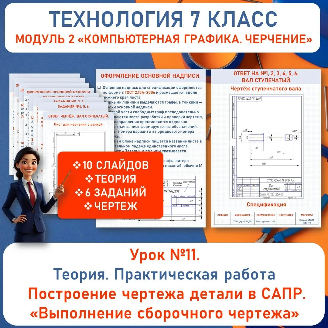 ✅Практическая работа «Выполнение сборочного чертежа». «Построение чертежа детали в САПР». Труд (технология). 7 класс. Урок 11.