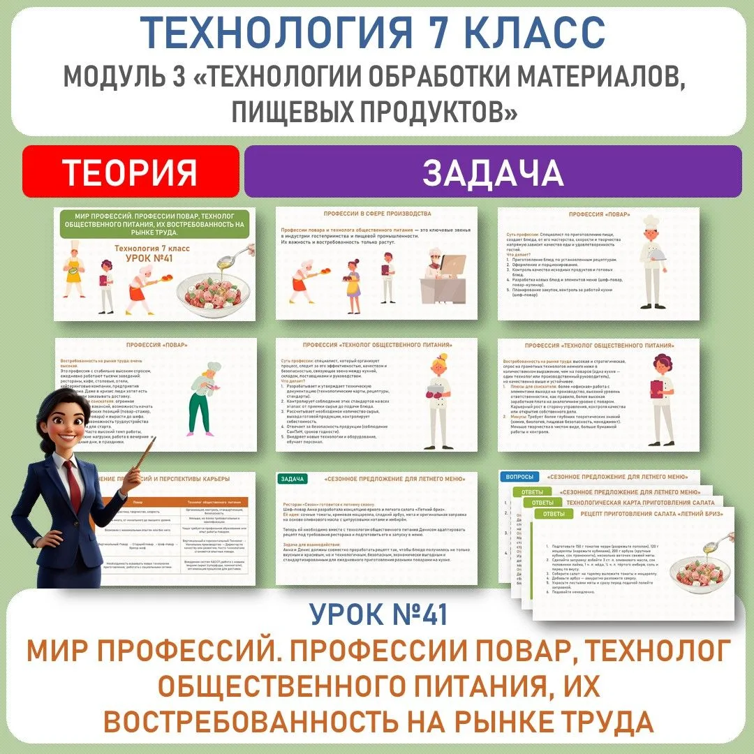 🆕✅«Мир профессий. Профессии повар, технолог общественного питания, их востребованность на рынке труда». Труд (технология) 7 класс. Уроки №41.