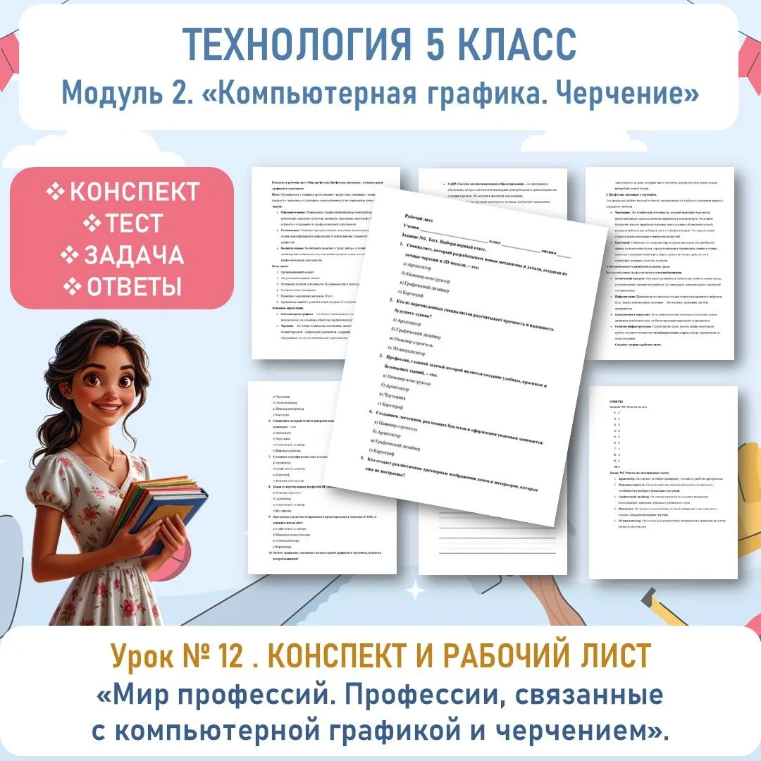 ✅🆕Конспект и рабочий лист «Мир профессий. Профессии, связанные с компьютерной графикой и черчением». Труд (технология) 5 класс. Урок №12.