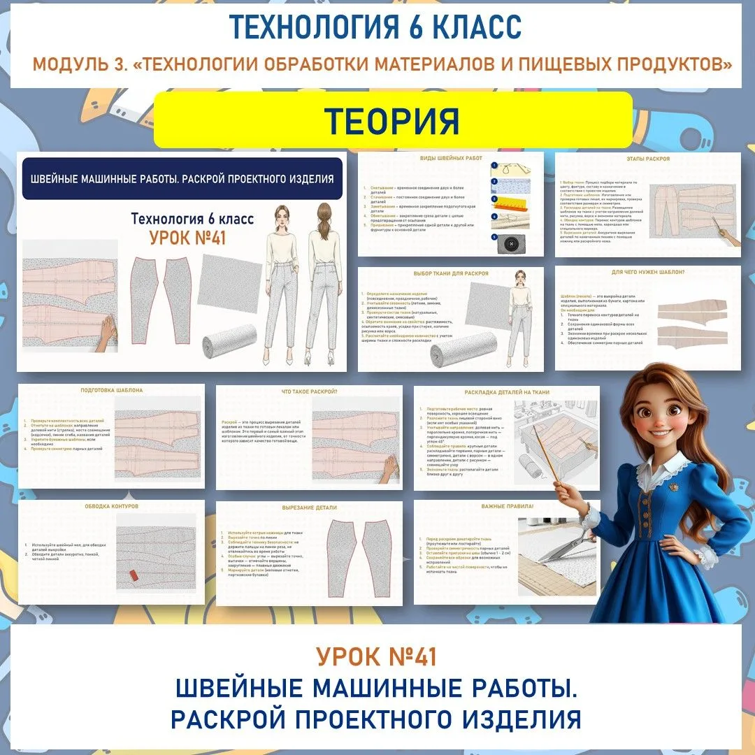 🆕✅«Швейные машинные работы». Раскрой проектного изделия. Труд (технология) 6 класс. Урок №41.