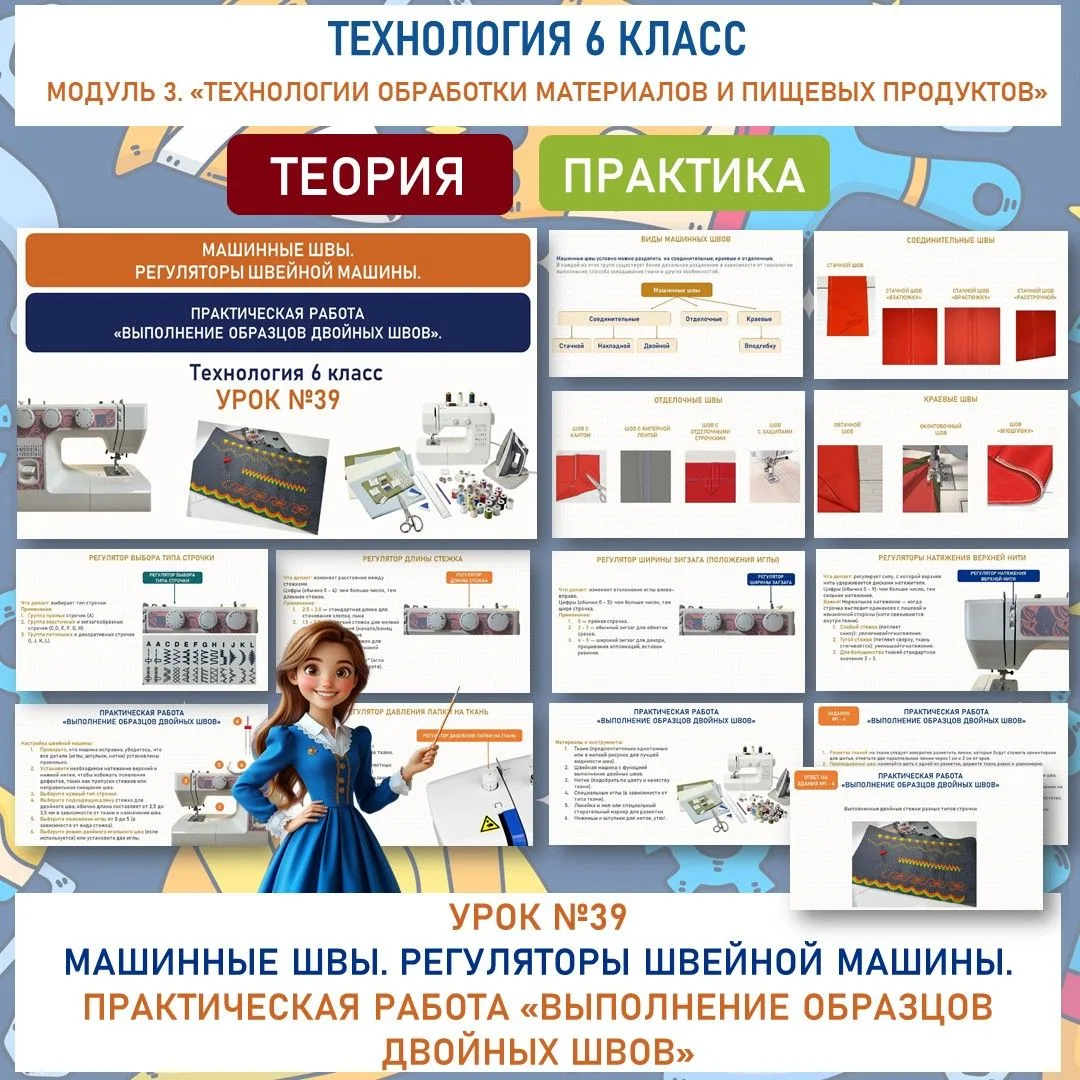 🆕✅Машинные швы. Регуляторы швейной машины. Практическая работа «Выполнение образцов двойных швов». Труд (технология) 6 класс. Урок №39.