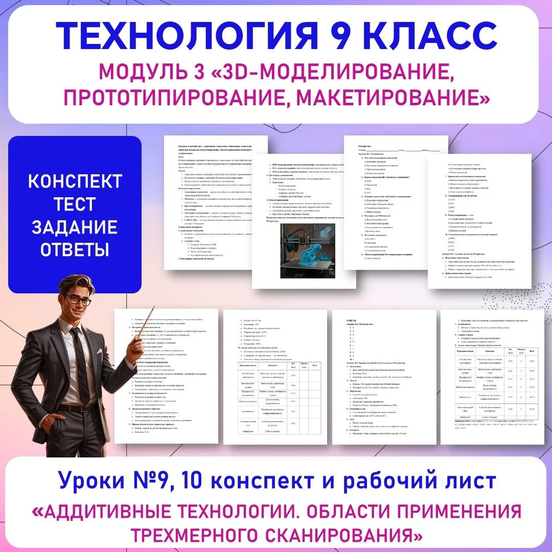 🆕Конспект и рабочий лист. «Аддитивные технологии. Области применения трёхмерного сканирования». Труд (технология) 9 класс. Уроки 9, 10.