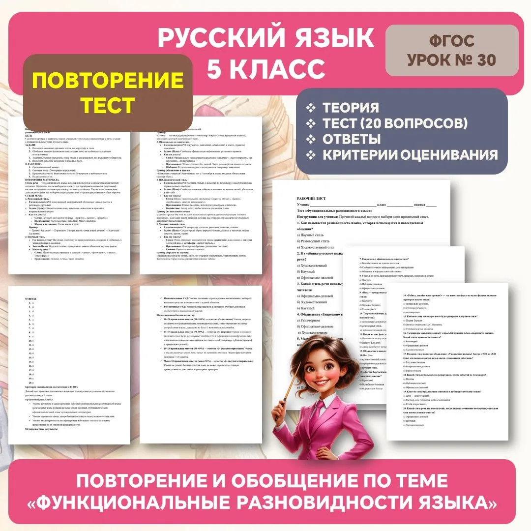 🆕Тест по русскому языку Повторение и обобщение по теме «Функциональные разновидности языка». 5 класс.