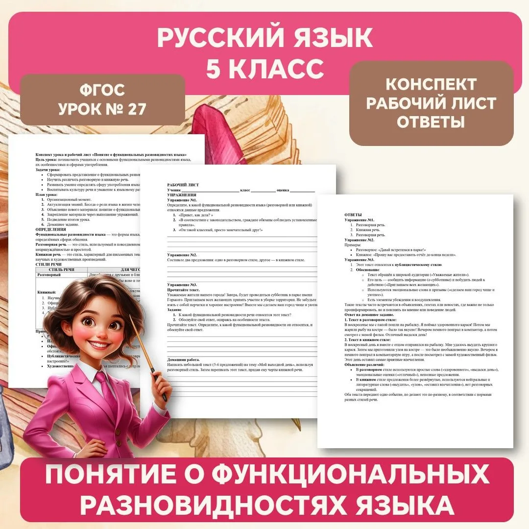 🆕Конспект и рабочий лист «Понятие о функциональных разновидностях языка». Русский язык 5 класс.