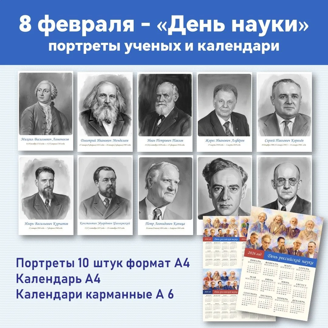🆕✅День российской науки. Оформление ко Дню науки. Портреты ученых.