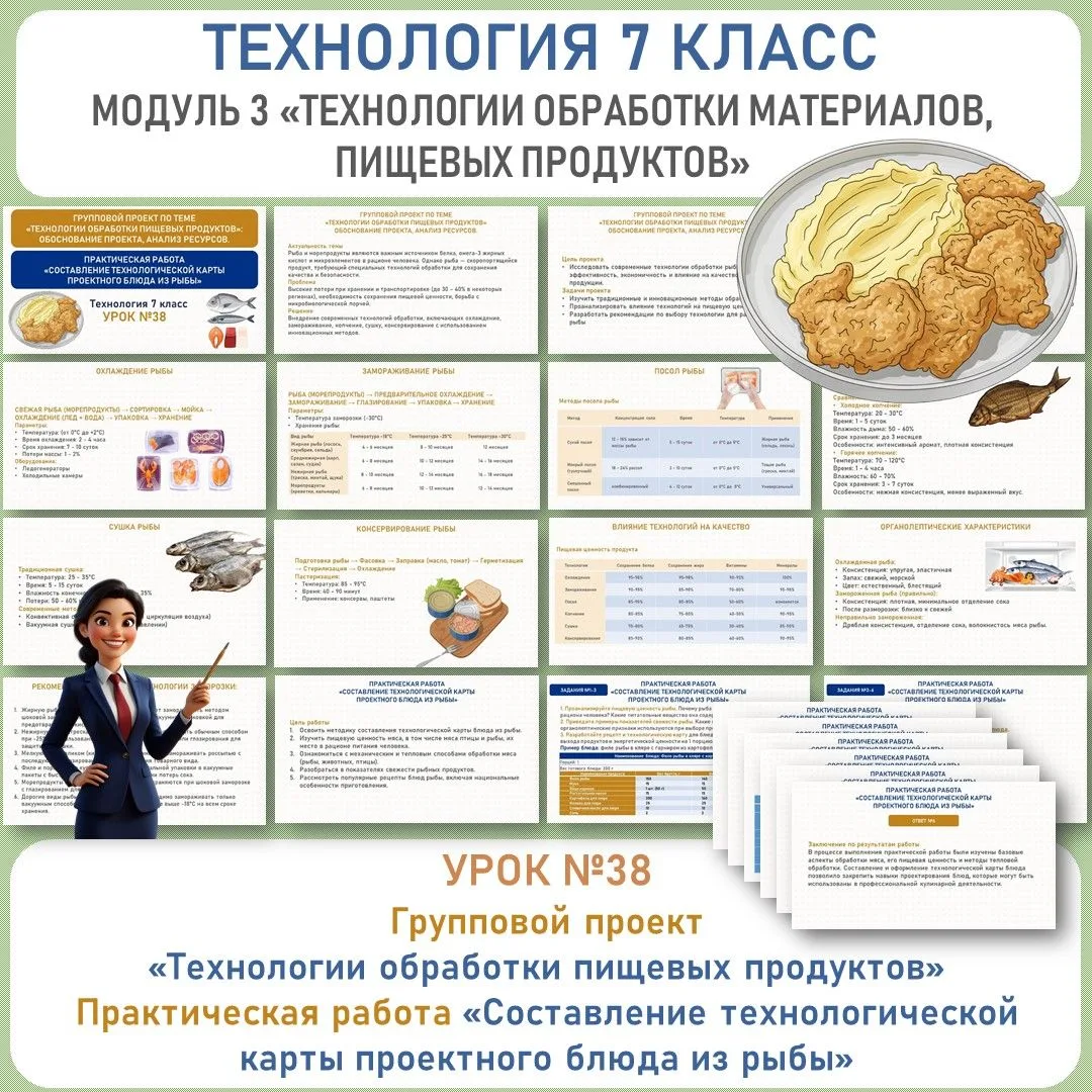 🆕✅Групповой проект «Технологии обработки пищевых продуктов». Практическая работа «Составление технологической карты проектного блюда из рыбы». Труд (технология) 7 класс. Уроки №38.