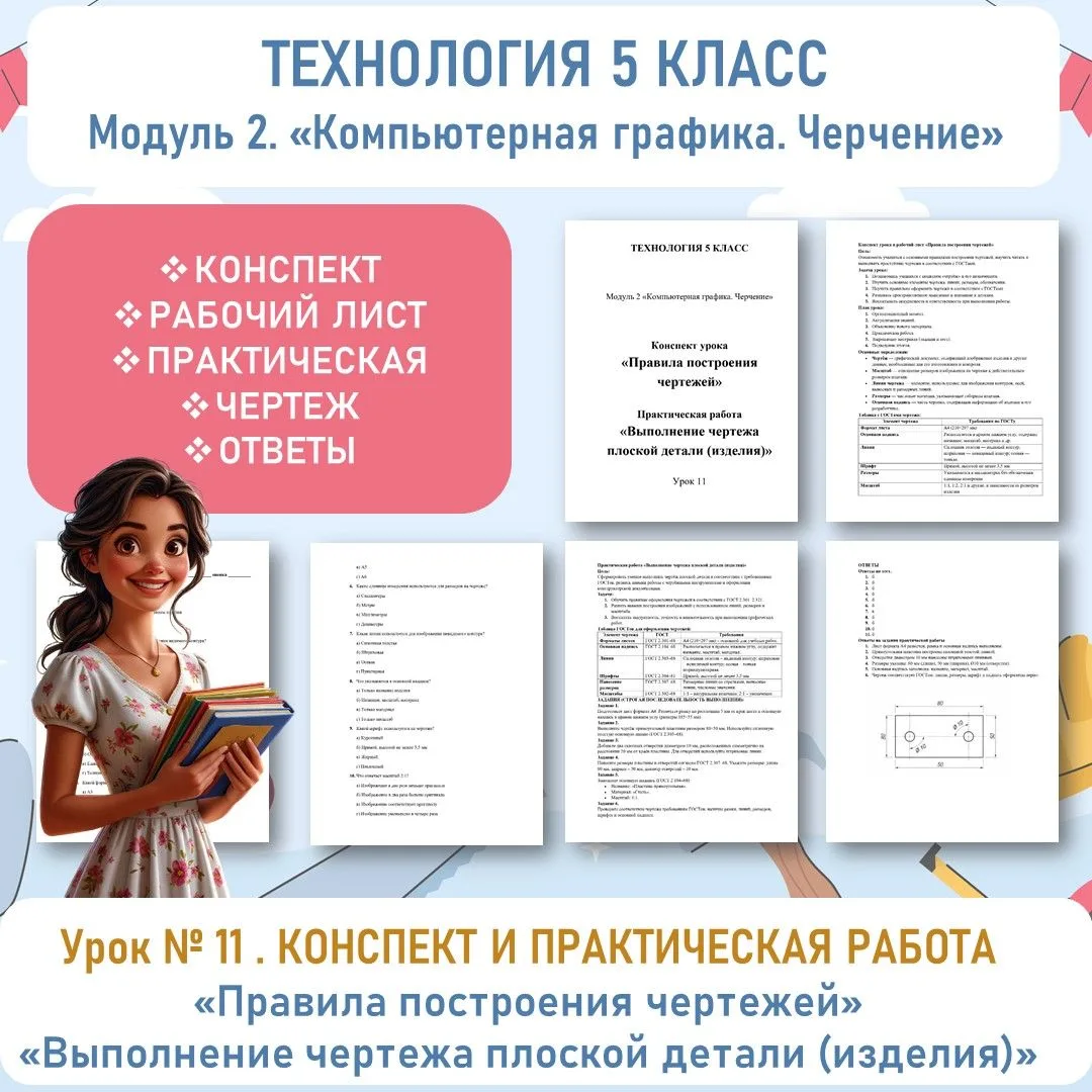 🆕Конспект «Правила построения чертежей». Практическая работа «Выполнение чертежа плоской детали (изделия)». Труд (технология) 5 класс. Урок №11.