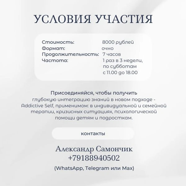 💙Глубокая интеграция знаний в новом подходе Addictive Self* применимом в индивидуальной и семейной терапии, кризисных ситуациях, психологической помощи детям и подросткам.