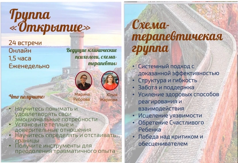 Схема-терапевтическая группа для всех желающих. Сертифицированные схема-терапевты, бережная и безопасная атмосфера , запись и все вопросы
