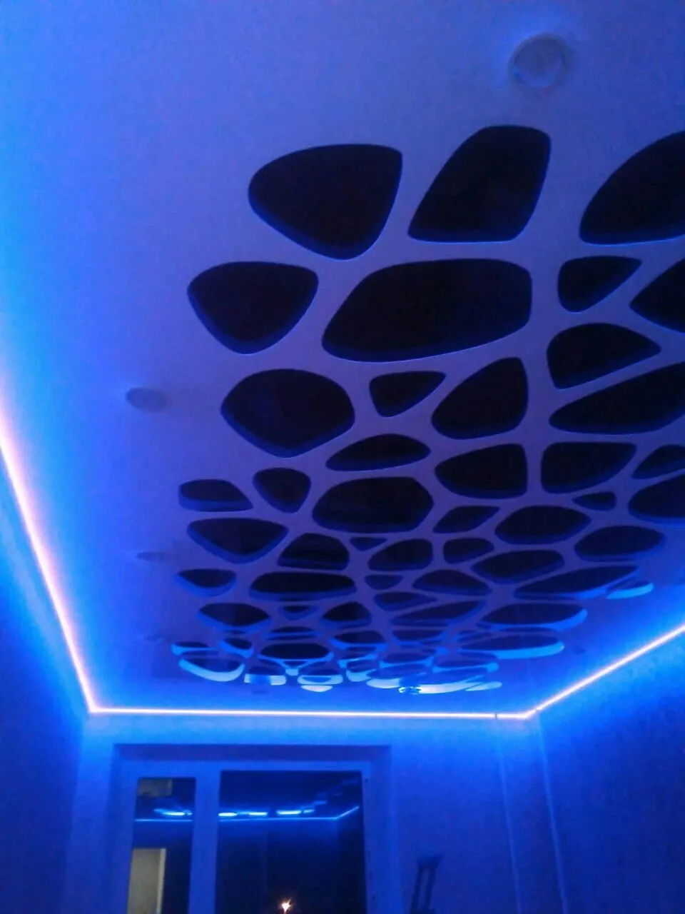 Эффект: современный, футуристичный. Потолок действительно выглядит парящим, особенно в темноте или при приглушенном свете.
