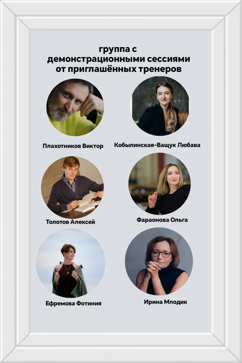 Это возможность познакомиться и увидеть работу тренера, услышать стратегию/гипотезы и задать свои вопросы, обоготить свое терапевтическое мышление в закрытой группе из 15 человек. А также возможность быть клиентом у тренера.