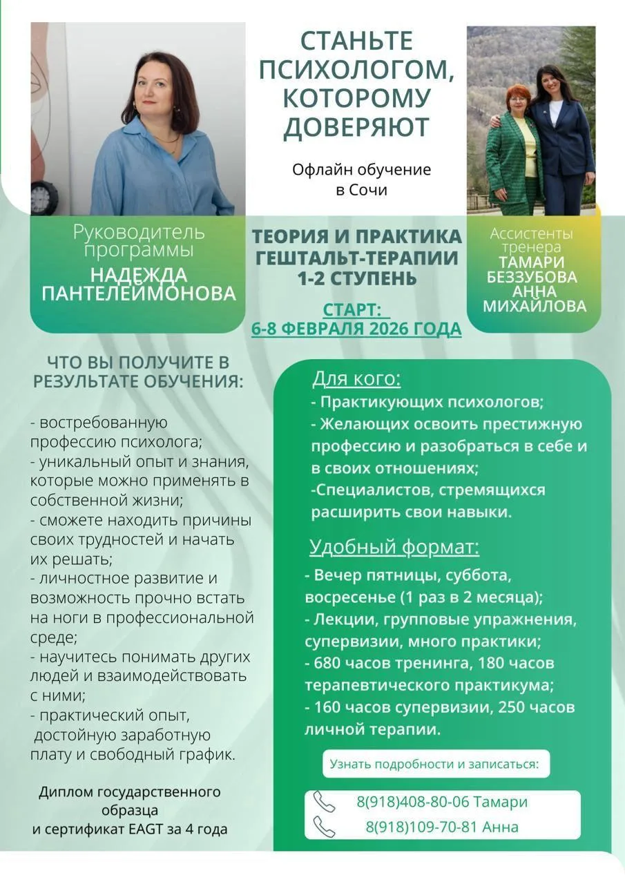 Психолог с 27-летним стажем, гештальт-терапевт (16 лет).