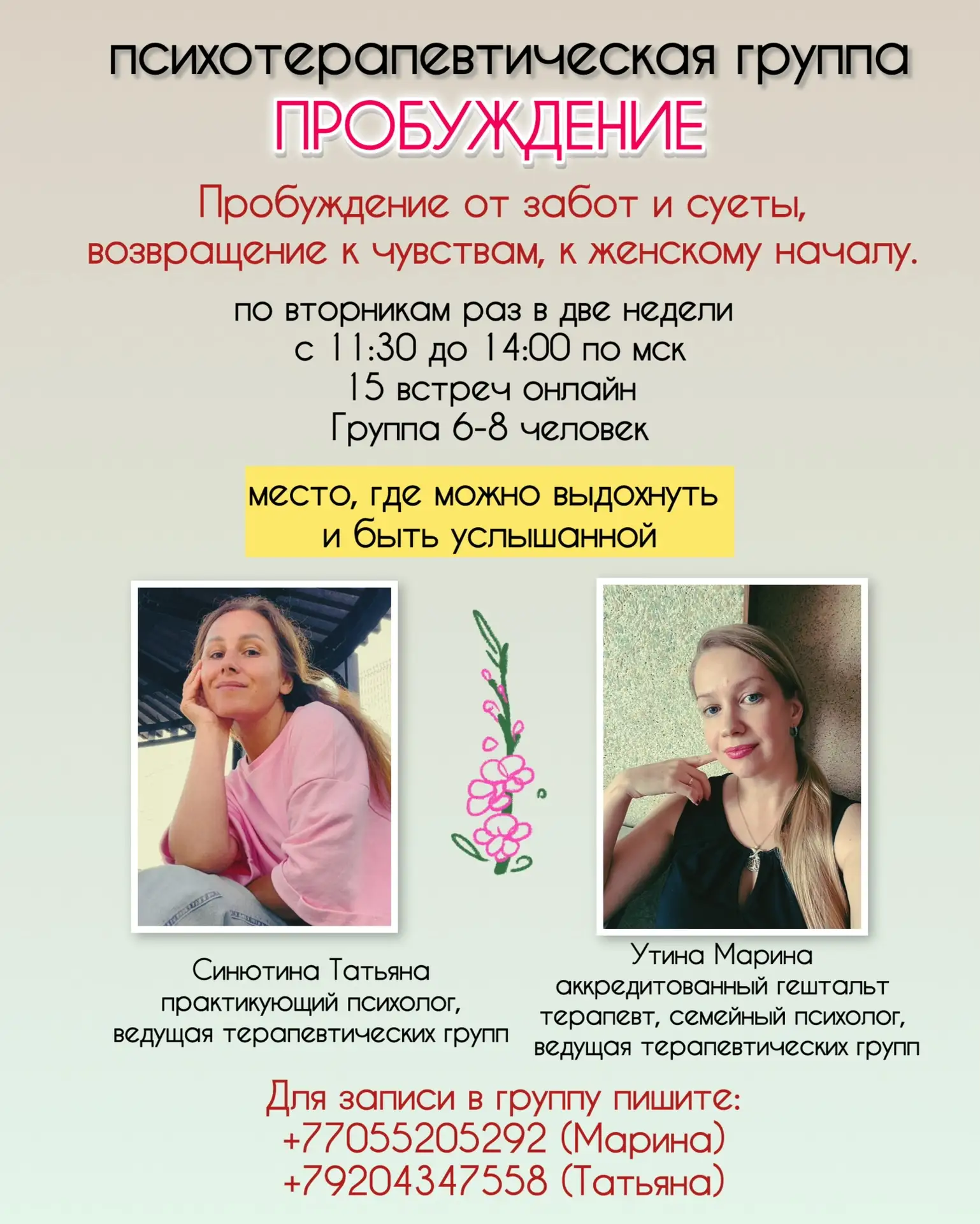 Приглашаем принять участие в психотерапевтической группе “Пробуждение” ☀️
