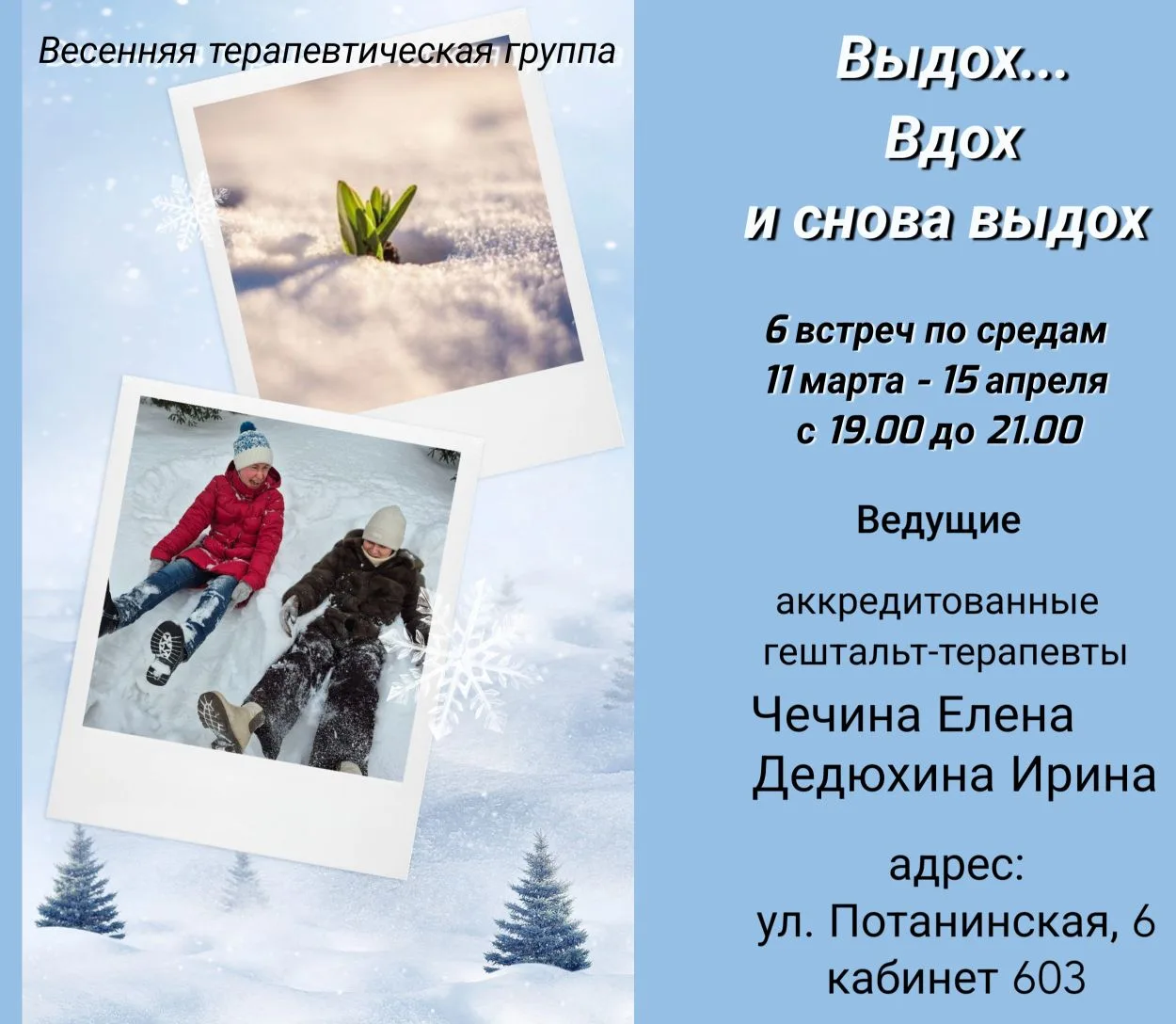 Приглашаем на очную группу в Новосибирске "Выдох, вдох и снова выдох".