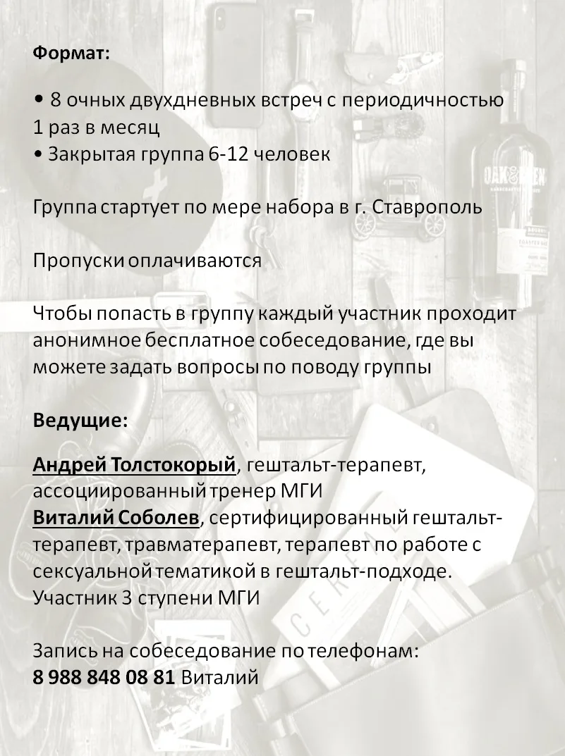 Приглашаем тебя в нашу мужскую терапевтическую группу!