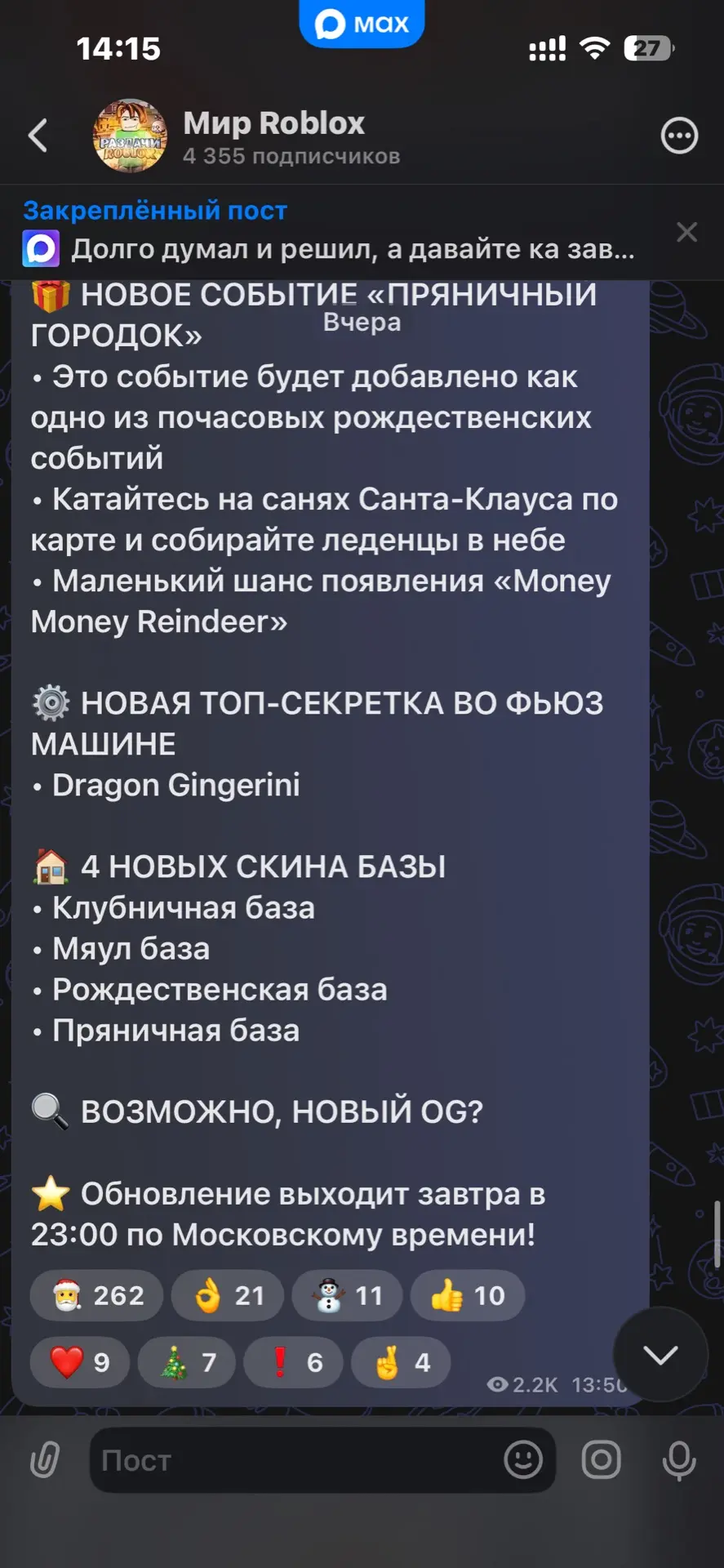 Реклама в канале https://max.ru/factymax на 24 часа 1900 рублей также делаю Взаимопиар