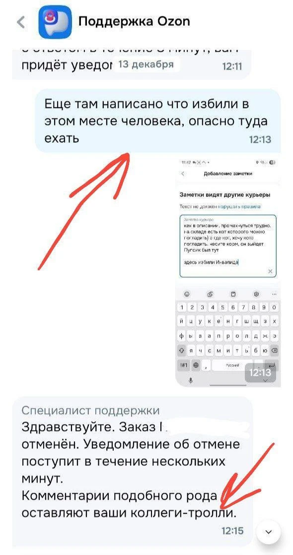 Девушка нашего подписчика решила тоже подработать курьером Озона, но один из заказов оказался настолько пугающим, что она решила его отменить. А всё из-за глупых комментариев других курьеров, которые вместо полезной информации, пишут всякий бред. 🤦♀