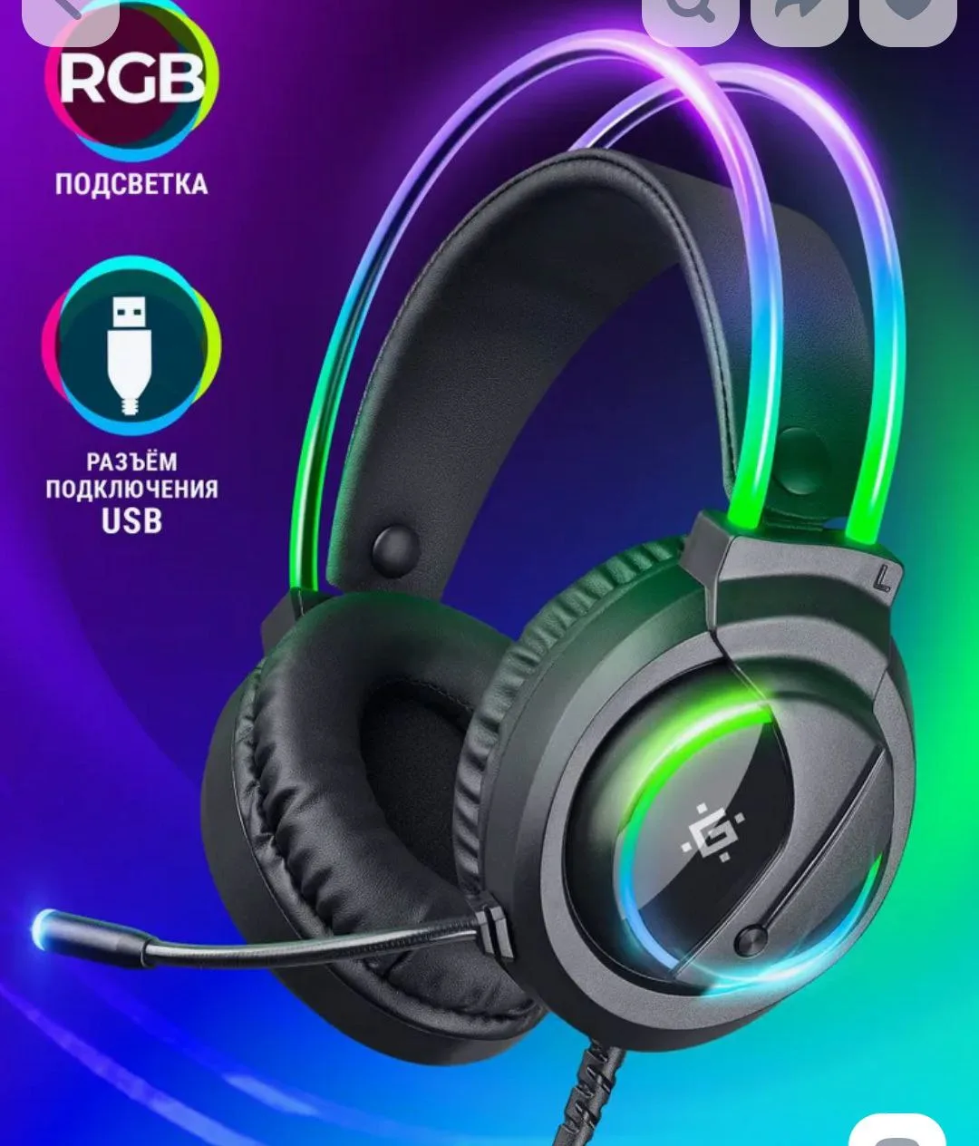 Цена-489-DEFENDER Игровые наушники проводные с микрофоном Flame черные RGB кабель 2 м
