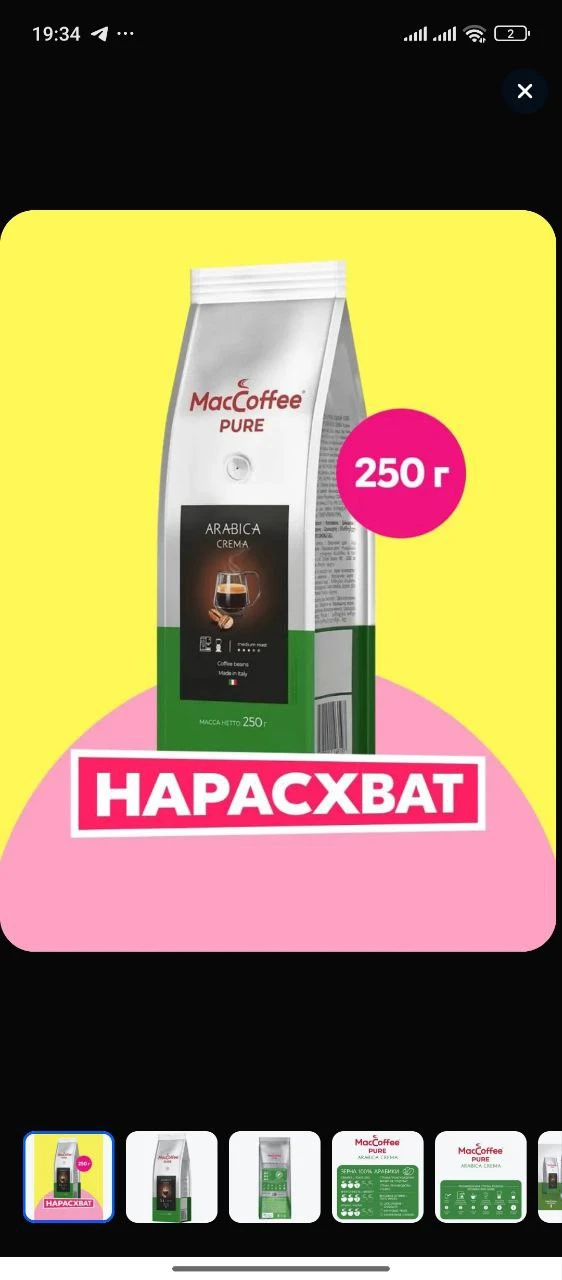 М. Цена-229 Кофе в зёрнах MacCoffee PURE Arabica Crema, 250 г