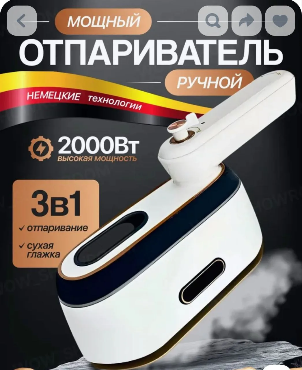 Цена-1299-Отпариватель для одежды 2000вт ручной мощный, портативный отпариватель