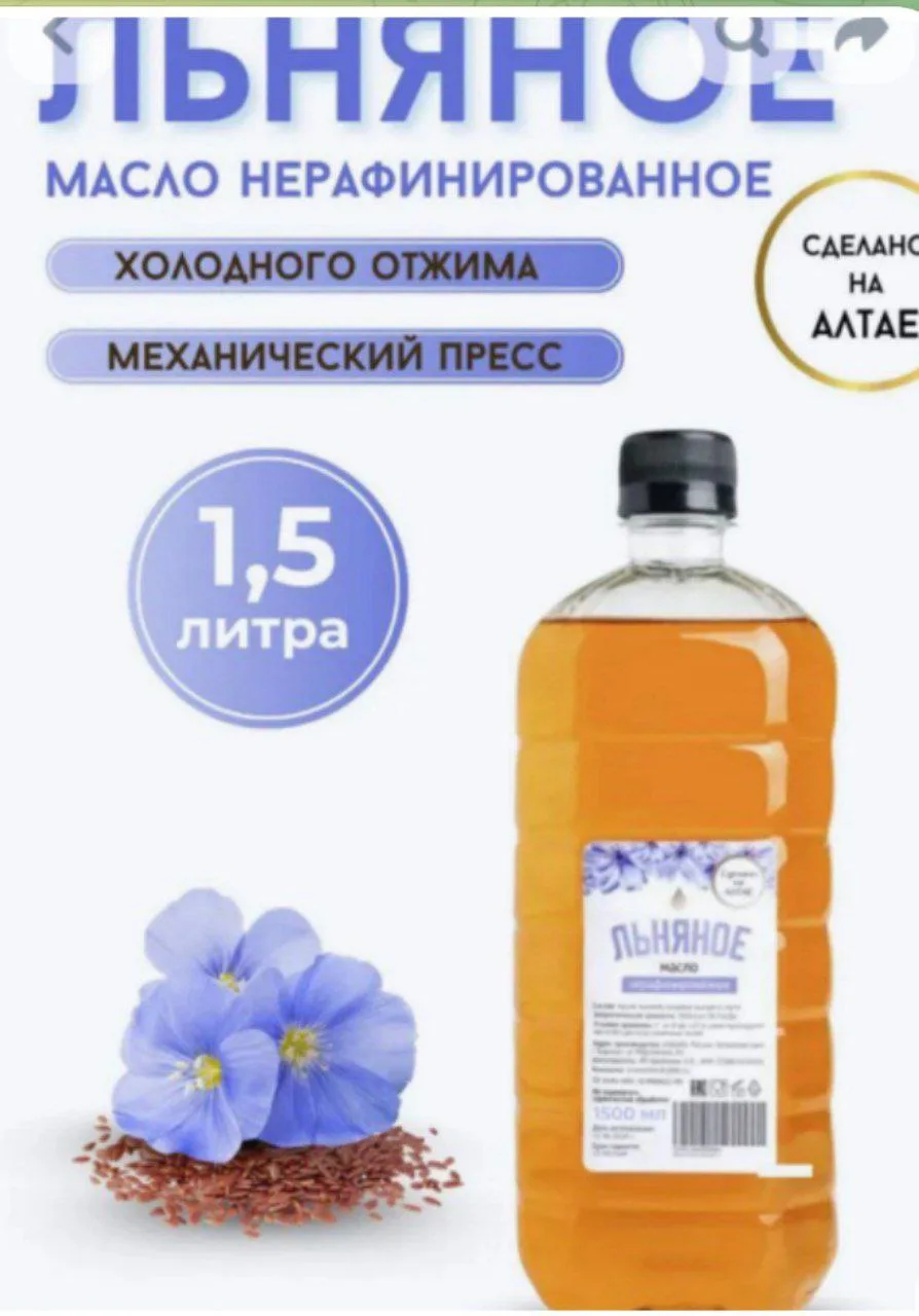Цена- 239-Масло льняное 1,5л, пищевое, холодный отжим, Алтайский край