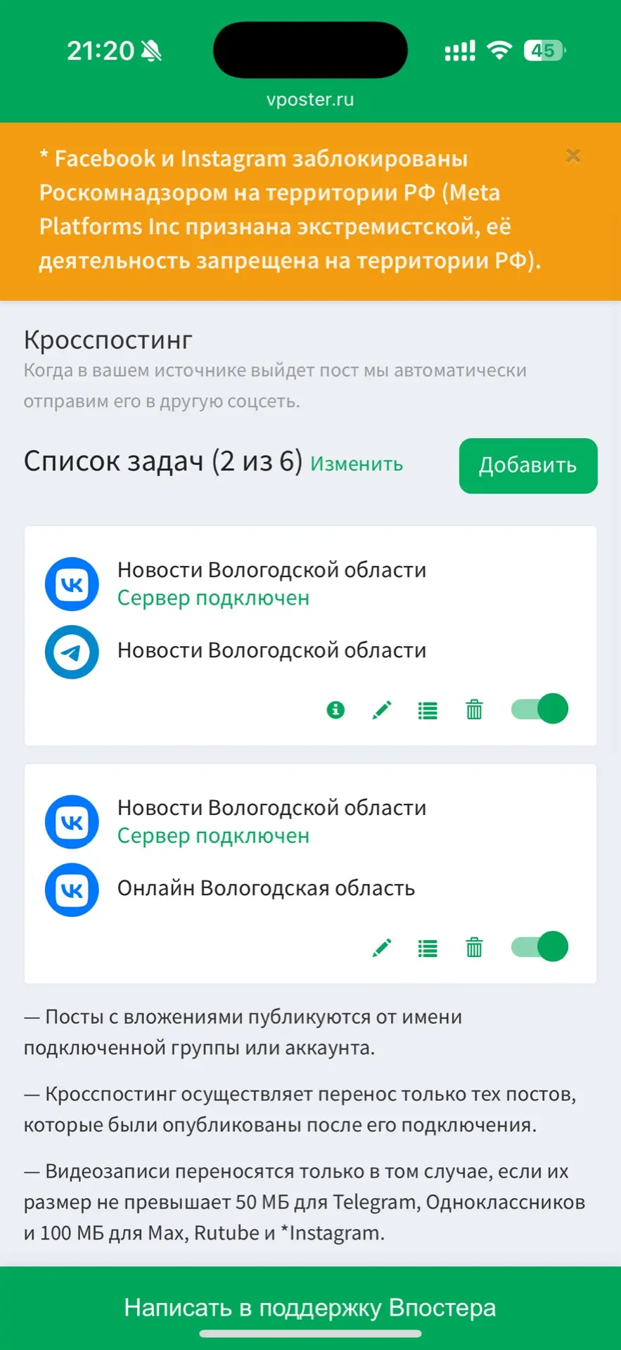 Или если нужен кросспостинг в телегу, то оставляйте. Просто для макса так же новый сделайте кросспостинг.