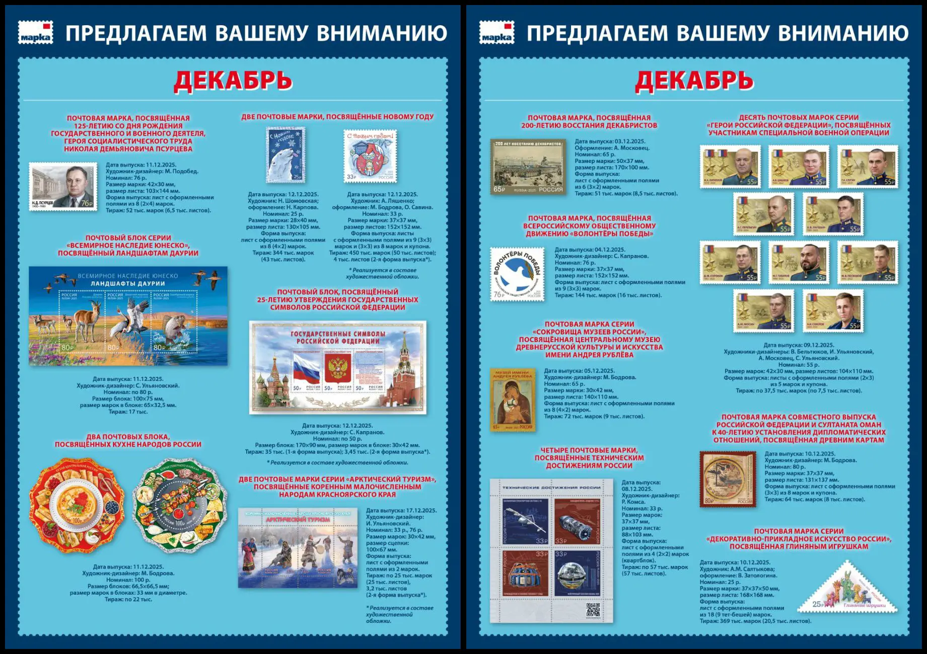 Выпуски почтовых марок в декабре 2025 г.