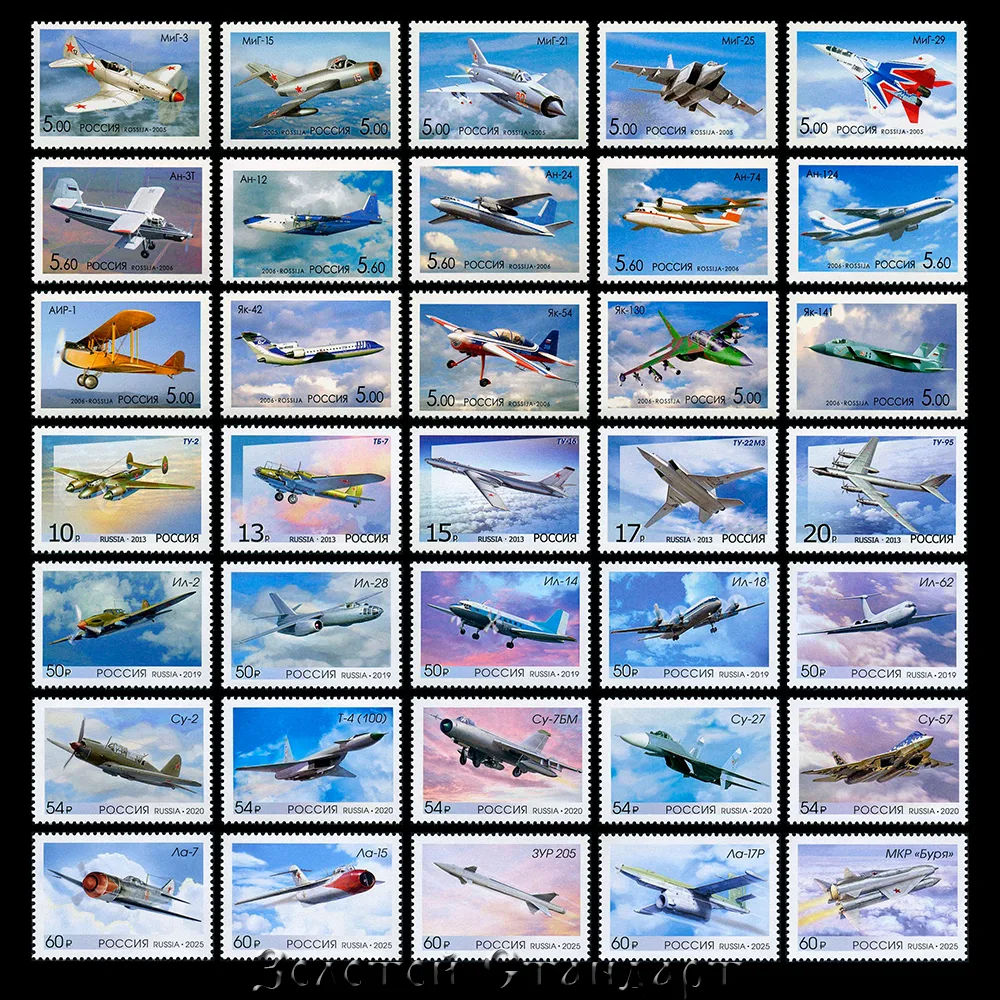 Тематическая подборка "История отечественного самолётостроения" 2005-2025 гг. - 35 марок (полная серия).