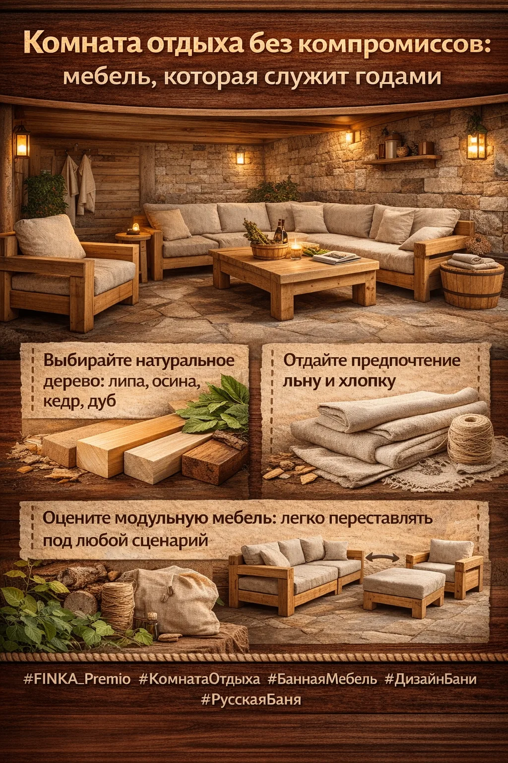 #FINKA_Premio #КомнатаОтдыха #БаннаяМебель #ДизайнБани #РусскаяБаня