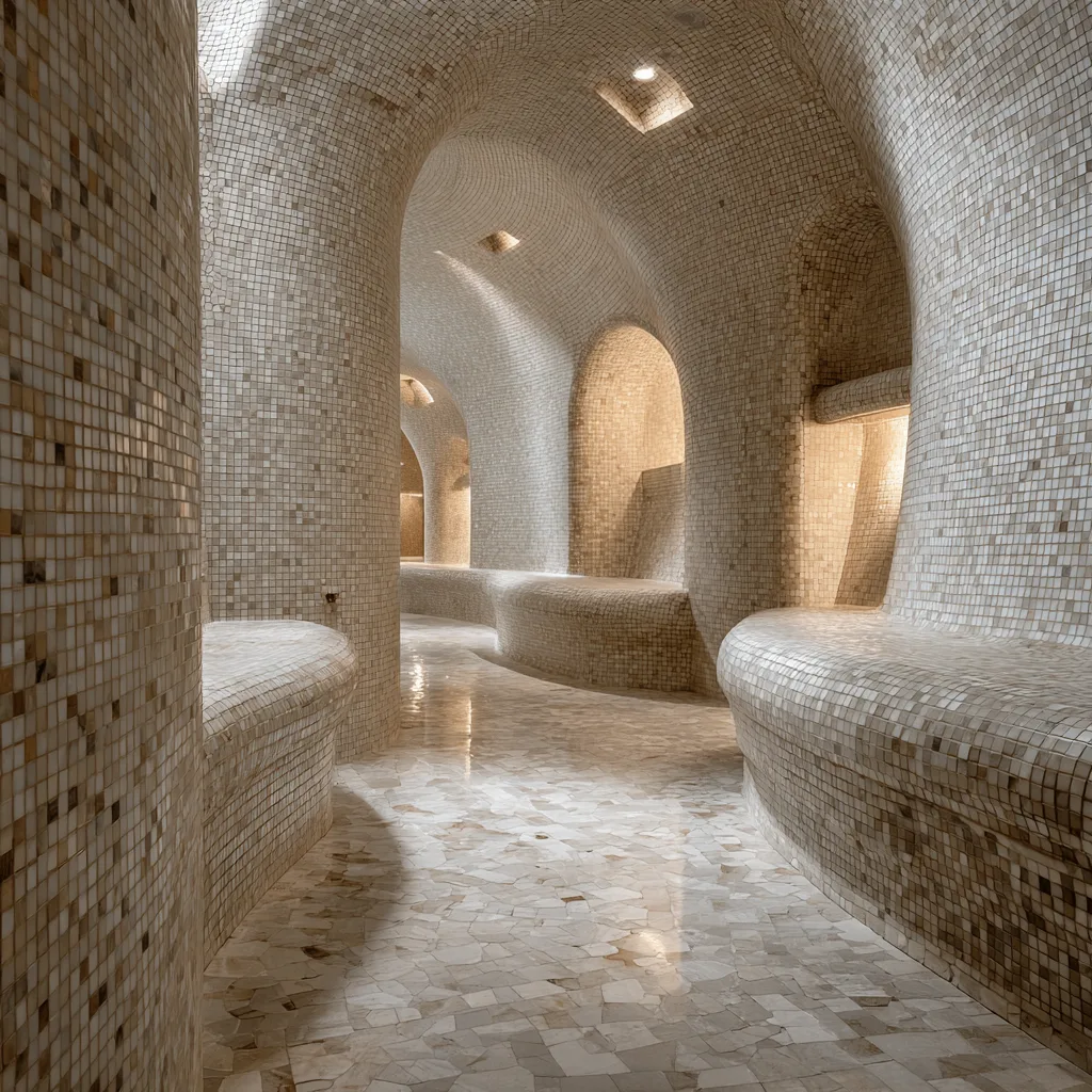 Практичный бонус — плитка с антибактериальным покрытием. Это не маркетинговый трюк, а реальный плюс к гигиене и простоте ухода. Не случайно сегодня более половины новых хаммамов оформляются именно мозаикой: она сочетает в себе эстетику, надёжность и гибкость в проектировании.